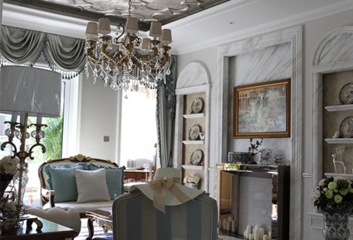 以都市新贵项目定位,高贵白和奢华银是整个空间的主角,抛掉压抑,以另一种形态诠释奢华舒适的居住空间,尽显当代时尚风范的法式风格样板房。